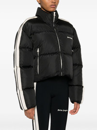 embroidered-logo jacket Highlights - Black - Feather down - Padded design - Quilted - Embroidered logo at the chest - Front zip fastening - High neck - Long sleeves - Side stripe detailing - Elasticated cuffs - Two side zip-fastening pockets - Internal slip pocket - Full lining - Straight hem Imported Composition Lining: Polyamide 100%, Polyester 100%, Down 90%, Feather 10% Outer: Polyamide 100% SIZE & FIT Model measurements Height 5 ft 11 in(1.8 m) Bust/Chest 32.67 in(83 cm) Hips 35.03 in(89 cm) Waist 25.19 in(64 cm)