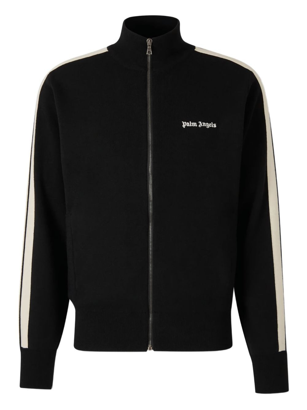 embroidered-logo stripe jacket Highlights - Black - Embroidered logo - Ribbed cuffs - Mock neck - Front zip closure - Side stripe detail Imported Composition Wool 40%, Viscose 30%, Polyamide 20%, Cashmere 10% Washing instructions Read Manufacturer Guidelines