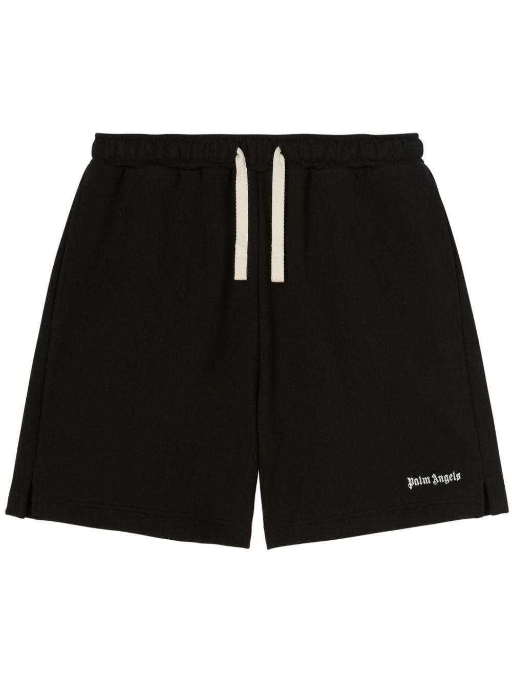 embroidered-logo track shorts Palm Angels' irreverent spirit is reflected in these track shorts. Made from black cotton, this piece boasts a white logo embroidered on the front. Highlights - Black - Cotton - Embroidered logo to the side - Elasticated drawstring waistband - Two side slit pockets Made in Italy Composition Outer: Cotton 100% Lining: Cotton 100% SIZE & FIT FittingInformation Designed for a regular fit, offering an even fit over the leg This piece fits true to size – take your usual size