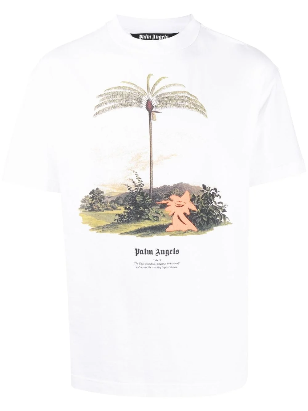 'Enzo From The Tropics' T-shirt Palm Angels mixes Californian influences with Italian craftsmanship for distinctive streetwear designs. Cut from cotton in a white colour, this T-shirt boasts a signature palm tree motif at the front. Highlights - White - Organic cotton - Graphic print to the front - Round neck - Short sleeves - Straight hem Made in Italy Composition Organic Cotton 100%, Polyester 100% Washing instructions Machine Wash