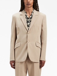 Fitted Retro single-breasted blazer Inspired by classic '70s styles, the Fitted Retro blazer is crafted in Italy from heavy cotton twill reminiscent of timeless tailoring silhouettes. Emblazoned with Palm Angels' logo at the rear, the design boasts wide notched lapels and diagonally-placed flap pockets at the sides. Highlights - Beige - Cotton blend - Tailored design - Notched lapels - Front button fastening - Two side flap pockets - Long sleeves - Buttoned cuffs - Logo patch to the rear - Central rear vent Made in Italy Composition Outer: Cotton 70%, Polyester 30% Lining: Viscose 100% SIZE & FIT FittingInformation Designed for a slim fit, offering a comfortable fit that sits just away from the body This piece fits true to size – take your usual size