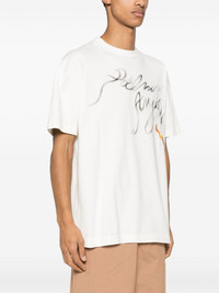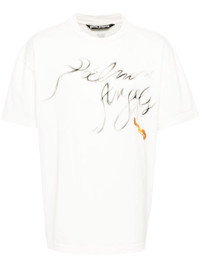 Foggy logo-print T-shirt Palm Angels' logo takes the focus of this white T-shirt. The print appears at the front with a smoke effect, contrasting with the rest of its cotton construction. Highlights - Off-white - Cotton - Jersey texture - Ribbed crew neck - Short sleeves - Smoke effect logo print at the front - Gold-tone monogram plaque to the rear - Mini logo tag at the side - Straight hem Made in Italy Composition Cotton 100% SIZE & FIT Model measurements Height 6 ft 2 in(1.87 m) Bust/Chest 38.18 in(97 cm) Hips 36.61 in(93 cm) Waist 29.13 in(74 cm) Measurement CHEST 51.18 in(130 cm) SLEEVE LENGTH 21.25 in(54 cm) LENGTH 29.92 in(76 cm) Washing instructions Hand Wash