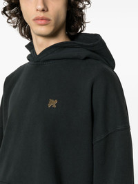 Foggy logo-print hoodie The Foggy logo print at the back of this black Palm Angels hoodie is designed to look like its formed from the swirling smoke of a match. It’s cut to a loose profile and appliqued with an antiqued metal monogram at the chest. Highlights - Black - Cotton - Jersey texture - Garment dyed - Classic hood - Drop shoulder - Long sleeves - Gold-tone logo plaque - Front pouch pocket - Logo print to the rear - Ribbed cuffs and hem Made in Italy Composition Cotton 100% SIZE & FIT Model measurements Height 6 ft 1 in(1.85 m) Bust/Chest 36.22 in(92 cm) Hips 36.22 in(92 cm) Waist 27.55 in(70 cm) FittingInformation Designed to be unstructured, offering a loose fit throughout Made from a midweight non-stretch fabric, this piece offers minimal elasticity when worn This piece fits true to size – take your usual size Washing instructions Hand Wash