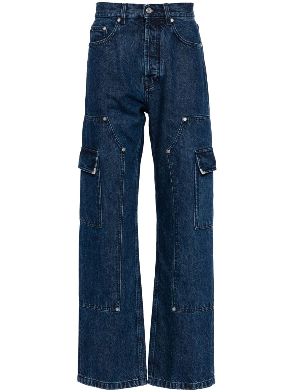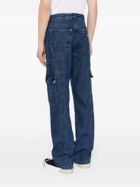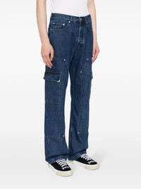 Frame straight-leg cargo jeans Palm Angels offers a workwear-inspired style with these Frame jeans. They're crafted from indigo blue denim to a classic straight-leg and detailed with rivets and side cargo pockets for a utilitarian touch. Highlights - Indigo blue - Cotton - Denim - Rivet detailing - Embroidered logo to the rear - Belt loops - Concealed fly and button fastening - Classic five pockets - Two side cargo pockets - Straight leg Made in Italy Composition Lining: Polyester 65%, Cotton 35% Outer: Cotton 100% SIZE & FIT Model measurements Height 6 ft 2 in(1.87 m) Bust/Chest 33.07 in(84 cm) Hips 35.43 in(90 cm) Waist 26.77 in(68 cm) FittingInformation Designed with a straight leg, these jeans allow for an unrestricted and comfortable fit over the leg Constructed from stretch denim, this piece offers a stretch fit with durability This piece fits true to size – take your usual size