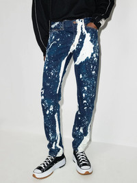 Galaxy Dye slim-fit jeans Cut for a slim fit and a mid-rise, these Palm Angels' jeans are defined by their Galaxy Dye print, that creates the effect of splatter accents over a navy background. Adorned with a logo patch at the rear, they fasten at the front with a button and zip fly and are given a classic look thanks to their five-pocket design. Made in Italy Composition Leather 100%, Cotton 100%, Polyester 100% SIZE & FIT Model measurements Height 6 ft 1 in(1.86 m) Bust/Chest 32.67 in(83 cm) Hips 34.25 in(87 cm) Waist 25.19 in(64 cm) FittingInformation This piece fits true to size. We recommend you get your regular size Regular fit Made with a mid-weight non-stretch fabric Washing instructions Machine Wash