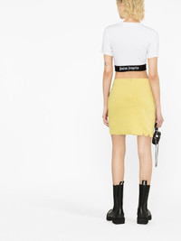 GD Destroyed miniskirt This GD Destroyed skirt from Palm Angels references the label’s DIY aesthetic. The yellow stretch cotton construction is punctuated by a black logo print and distressing, reflecting a loved-worn look. Made in Italy Composition Lining: Polyester 100% Outer: Cotton 100% SIZE & FIT Model measurements Height 5 ft 10 in(1.79 m) Bust/Chest 31.49 in(80 cm) Hips 35.03 in(89 cm) Waist 23.62 in(60 cm) FittingInformation This mini-length skirt is intended to be worn just below the waist Made from a midweight non-stretch fabric, this piece offers minimal elasticity when worn This piece fits true to size – take your usual size