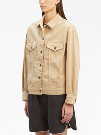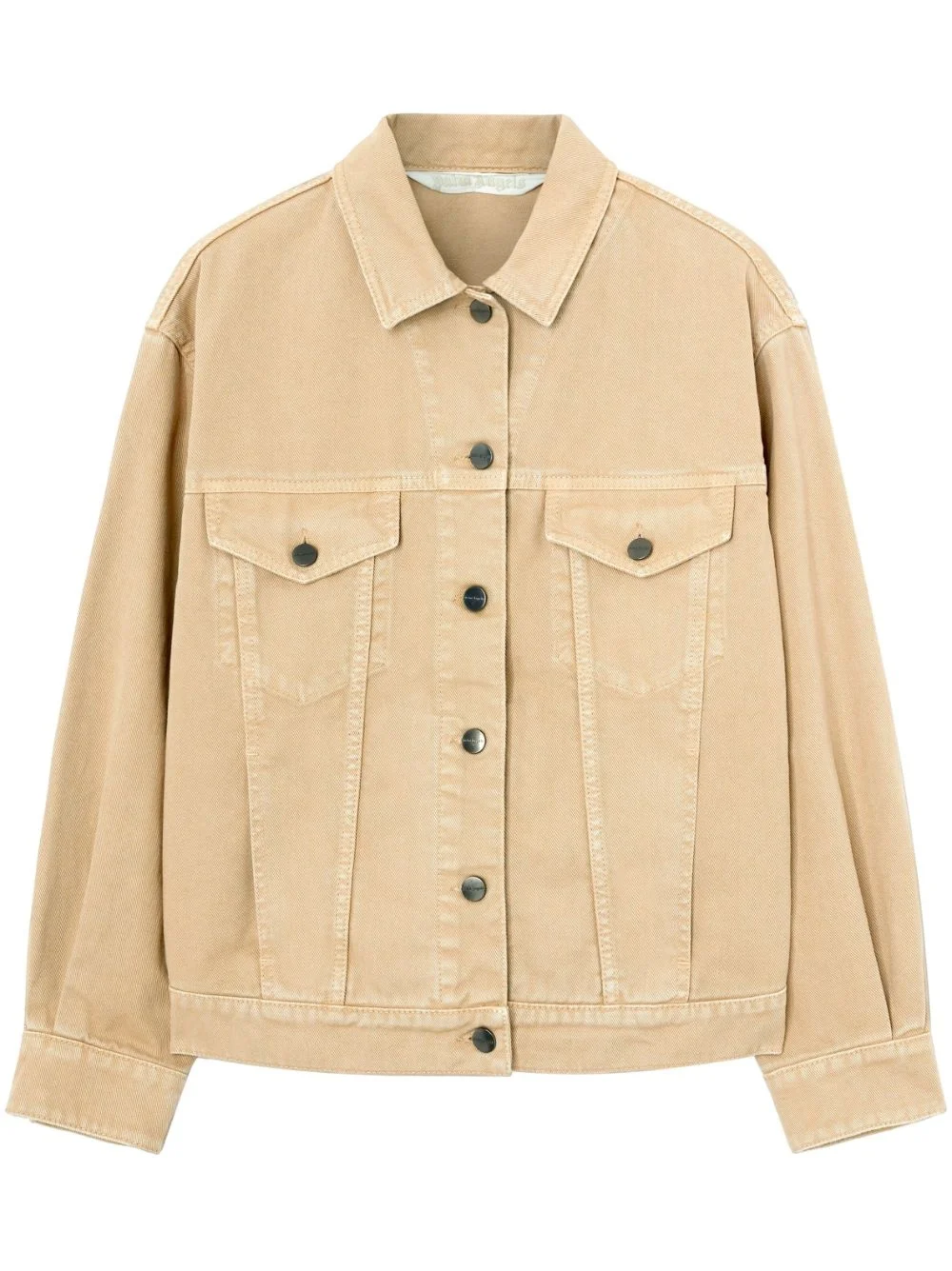 GD Loose Bull denim jacket Palm Angels' denim jacket champions the enduring logomania trend. This cotton garment is embroidered with the signature palm tree motif on each sleeve, blending in with the beige backdrop. Highlights - Beige - Cotton - Embroidered palm tree logo - Classic collar - Long sleeves - Buttoned cuffs - Front button fastening - Two chest flap pockets - Belted waist tabs - Straight hem Made in Italy Composition Cotton 100%
