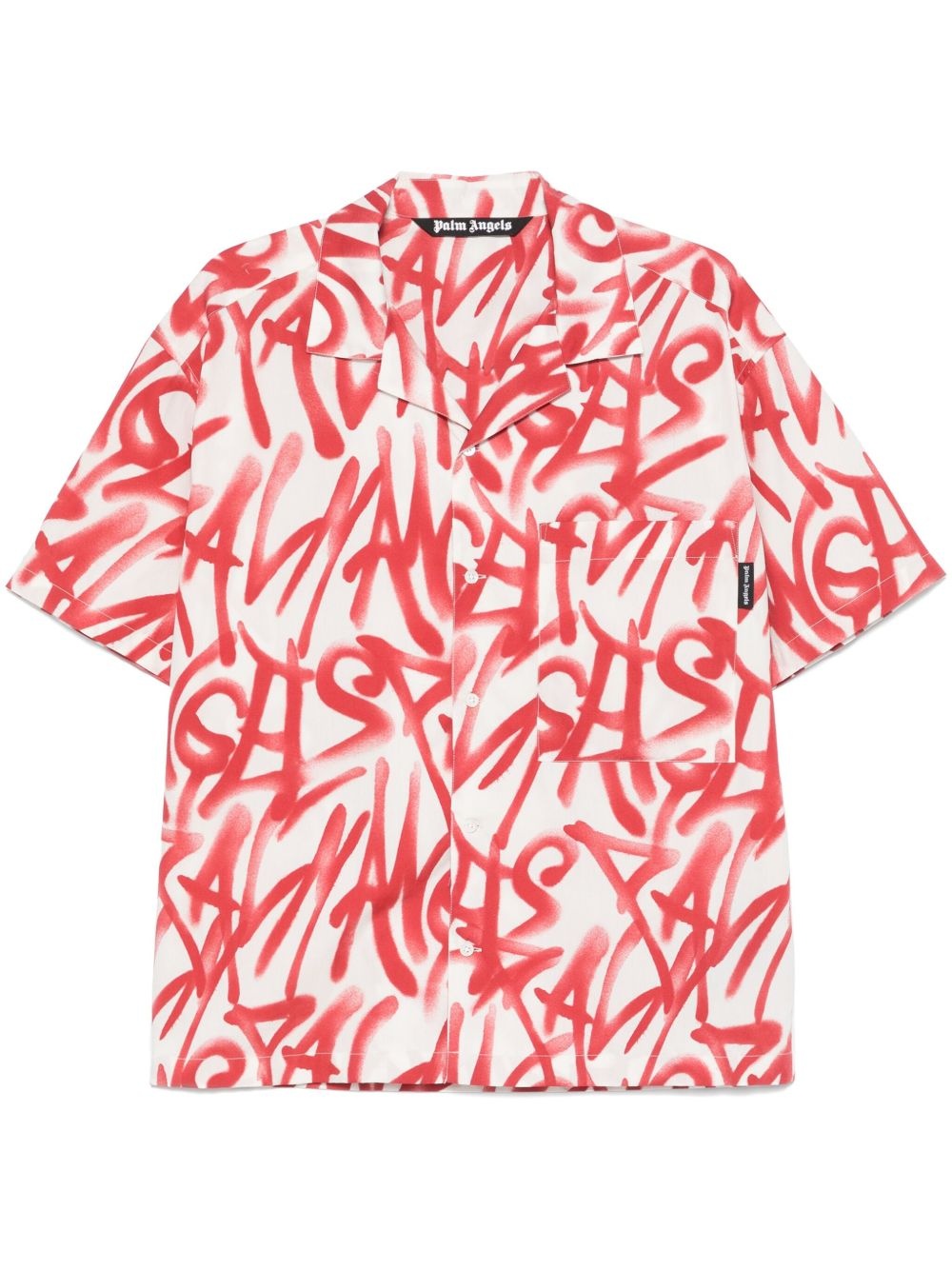 graffiti-print shirt Highlights - White - Front button fastening - Chest patch pocket - Camp collar - Short sleeves Imported Composition Cotton 100% SIZE & FIT Model measurements Height 6 ft 0 in(1.84 m) Bust/Chest 35.82 in(91 cm) Hips 37 in(94 cm) Waist 28.34 in(72 cm) FittingInformation Designed for an oversized fit, offering additional room throughout Made from a midweight non-stretch fabric