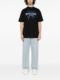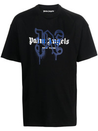 New York monogram-print T-shirt Palm Angels leans into its streetwear aesthetic with this black T-shirt. It’s crafted from cotton and accented with gothic-inspired logo lettering atop a contrasting blue graffiti motif. Highlights - Black/cobalt blue/white - Cotton - Soft jersey - Crew neck - Logo print at the chest - Graffiti print - Text print - Short sleeves - Straight hem Imported Composition Cotton 100% SIZE & FIT Model measurements Height 6 ft 1 in(1.85 m) Bust/Chest 36.22 in(92 cm) Hips 36.22 in(92 cm) Waist 27.55 in(70 cm) FittingInformation Designed to be unstructured, offering a loose fit throughout Made from a midweight non-stretch fabric, this piece offers minimal elasticity when worn This piece fits true to size – take your usual size Washing instructions Hand Wash
