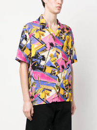 graphic-print bowling shirt Palm Angels imbues its bold style into this short-sleeve shirt, thanks to an all-over graphic print that adorns this casual design. Made in Italy Composition Viscose 100%, Polyester 100% SIZE & FIT Model measurements Height 6 ft 2 in(1.87 m) Bust/Chest 35.82 in(91 cm) Hips 35.43 in(90 cm) Waist 27.95 in(71 cm) FittingInformation This piece fits true to size. We recommend you get your regular size Cut for a loose fit Made with a lightweight non-stretch fabric Washing instructions Machine Wash