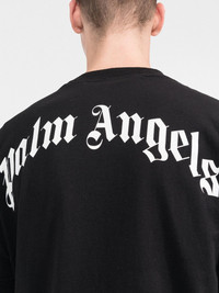 graphic-print cotton T-shirt graphic-print cotton T-shirt from PALM ANGELS featuring black/multicolour, cotton, graphic print at the chest, logo print to the front, round neck, short sleeves and straight hem. Imported Composition Cotton 100% SIZE & FIT Model measurements Height 6 ft 2 in(1.88 m) Bust/Chest 37.79 in(96 cm) Hips 38.58 in(98 cm) Waist 29.52 in(75 cm) FittingInformation This piece fits true to size. We recommend you get your regular size Cut for a loose fit Made with a mid-weight fabric Washing instructions Hand Wash