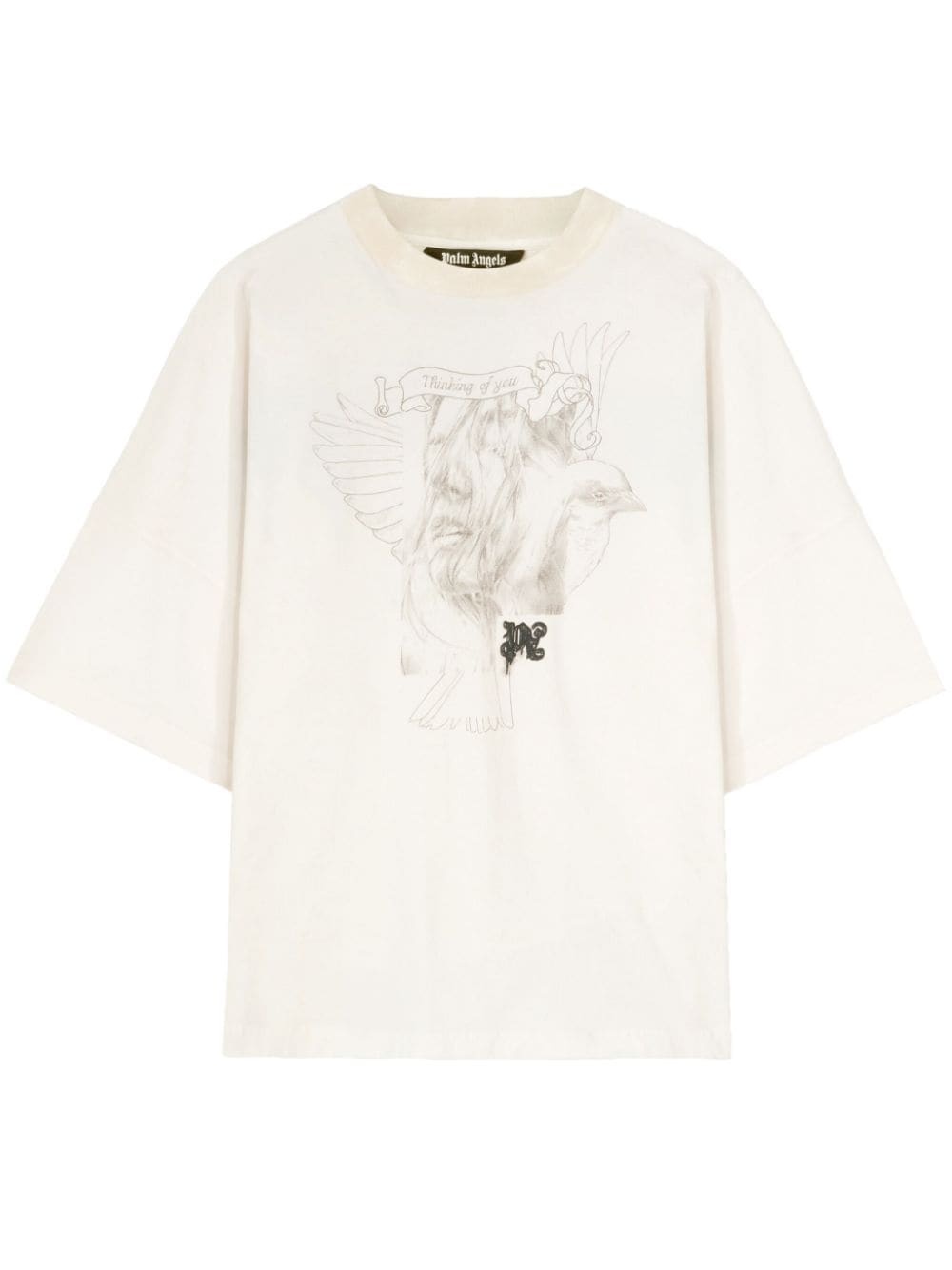graphic-print cotton T-shirt Highlights - Light beige/grey - Cotton - Jersey texture - Graphic print to the front - Logo print to the rear - Ribbed band collar - Crew neck - Drop shoulder - Short sleeves - Straight hem Imported Composition Cotton 100% Washing instructions Read Manufacturer Guidelines