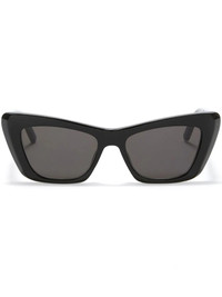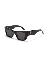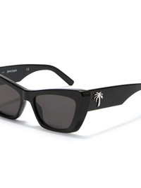 Hermosa square-frame sunglasses black tinted lenses square frame raised bridge logo plaque at the arm straight arms curved tips These glasses come with a protective case. Made in Italy Composition Acetate 90%, Metal 10%