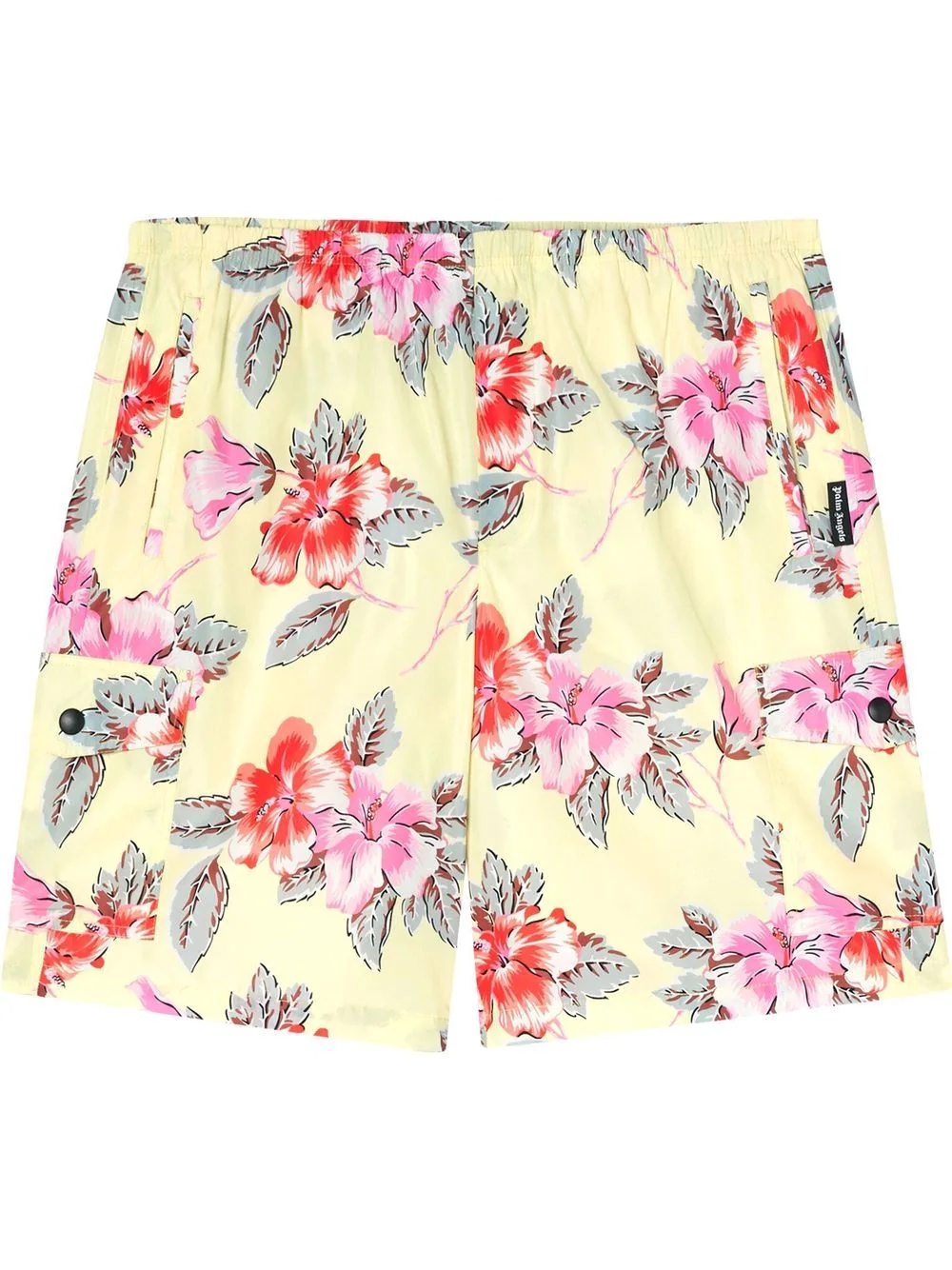 hibiscus-print cargo swim shorts Italian label Palm Angels has a carefree and rebellious aesthetic, inspired by American subcultures and Los Angeles' lifestyle. Printed with a colourful hibiscus flower pattern, these swim shorts feature multiple practical pockets for a silhouette that is influenced by skater styles. Made in Italy Composition Polyester 100%