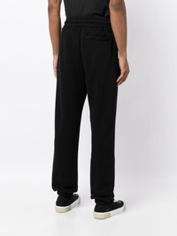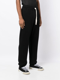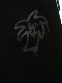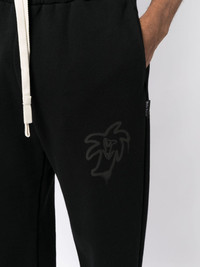 Hunter cotton track pants Shown here in a versatile black iteration, Palm Angels' Hunter track pants are spun in Italy from soft cotton and fitted with an adjustable drawstring waist for a secure fit. A tonal palm tree-print at the leg infuses the pair with a recognisable appeal. Highlights - Black - Cotton - Mid-rise - Elasticated drawstring waistband - Two side slit pockets - Palm tree print - Rear welt pocket - Straight leg - Elasticated ankles Made in Italy Composition Polyester 100% Body: Cotton 100% Lining: Cotton 100% SIZE & FIT Model measurements Height 6 ft 3 in(1.9 m) Bust/Chest 35.03 in(89 cm) Hips 36.61 in(93 cm) Waist 29.13 in(74 cm) FittingInformation Designed for a relaxed straight leg, allowing a comfortable and loose fit over the leg Adjust this piece’s waistband to your preference using the drawstring Made from a midweight non-stretch fabric, this piece offers minimal elasticity when worn This piece fits true to size – take your usual size