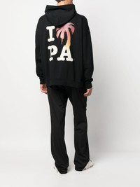 I Love PA-print cotton hoodie Made from breathable cotton and cut for a relaxed fit, this hoodie from Palm Angels is adorned with a seasonal 'I Love PA' motif at the front and back – a nod to the brand’s Californian roots. Highlights - Black/multicolour - Cotton - Logo print to the front - Logo print to the rear - Classic hood - Drop shoulder - Long sleeves - Front pouch pocket - Straight hem Imported Composition Cotton 100% SIZE & FIT Model measurements Height 6 ft 2 in(1.89 m) Bust/Chest 38.97 in(99 cm) Hips 38.18 in(97 cm) Waist 32.28 in(82 cm) FittingInformation Designed to be unstructured, offering a loose fit throughout Made from a midweight non-stretch fabric, this piece offers minimal elasticity when worn This piece fits true to size – take your usual size Washing instructions Hand Wash