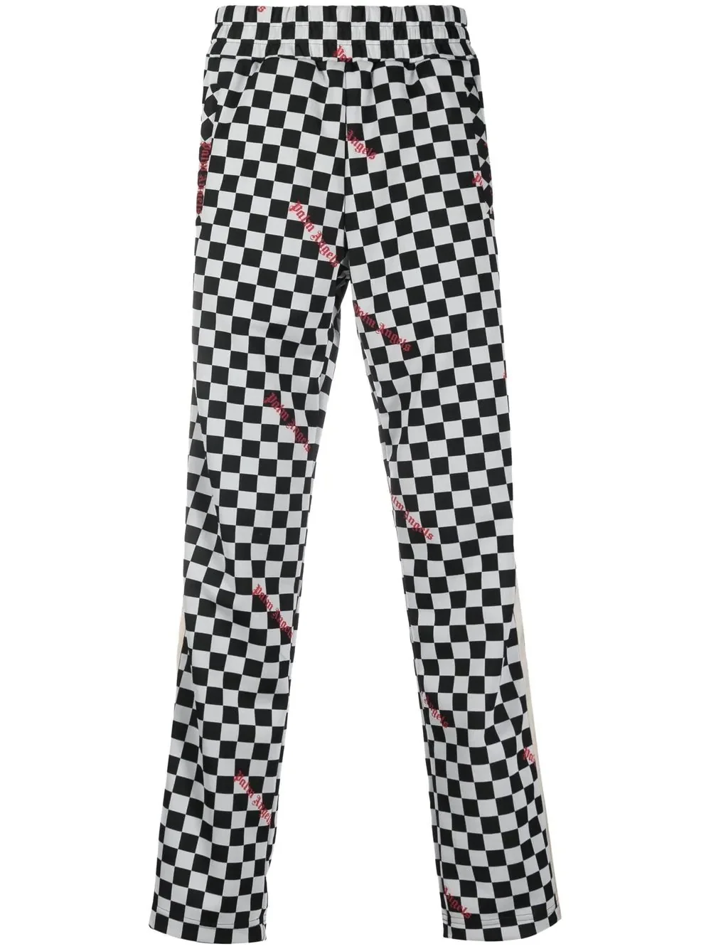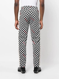 Jacquard Damier classic track pants Inspired by the Los Angeles skateboard scene, Palm Angels presents these track pants as part of their AW22 collection. True to the label’s approach, the piece features an all-over Damier graphic print and contrasting logo print. Made In Italy Composition Outer: Polyester 100% Lining: Polyester 100% SIZE & FIT Model measurements Height 6 ft 1 in(1.86 m) Bust/Chest 38.18 in(97 cm) Hips 38.18 in(97 cm) Waist 30.7 in(78 cm) Measurement FRONT RISE 12.51 in(31.8 cm) INSIDE LEG 31.49 in(80 cm) BACK RISE 14.01 in(35.6 cm) HIPS 40 in(101.6 cm) Hem Width 15 in(38.1 cm) WAIST 30 in(76.2 cm) Washing instructions Machine Wash