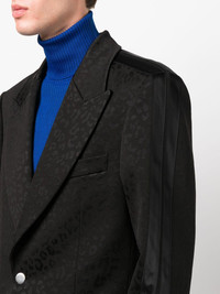 jacquard single-breasted blazer Made in Italy, this black blazer from Palm Angels is given a bold yet relaxed look thanks to its tonal leopard jacquard throughout. Cut for a tailored fit, this piece is elevated with peak lapels. Made in Italy Composition Outer: Polyamide 50%, Viscose 47%, Spandex/Elastane 3% Lining: Cupro 100%, Cotton 100% SIZE & FIT Model measurements Height 6 ft 2 in(1.87 m) Bust/Chest 35.82 in(91 cm) Hips 35.43 in(90 cm) Waist 27.95 in(71 cm) FittingInformation This piece fits true to size. We recommend you get your regular size Cut for a loose fit Made with a mid-weight fabric Washing instructions Machine Wash