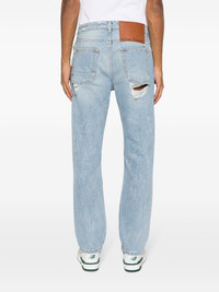 Jeans Highlights - Light blue - Cotton - Washed denim - Distressed effect - Denim patchwork design - Concealed fly and button fastening - Belt loops - Logo patch to the rear - Classic five pockets - Tapered leg Made in Italy Composition Lining: Polyester 65%, Cotton 35% Outer: Cotton 100%, Calf Leather 100% SIZE & FIT Model measurements Height 6 ft 2 in(1.89 m) Bust/Chest 35.03 in(89 cm) Hips 38.18 in(97 cm) Waist 29.92 in(76 cm) FittingInformation Designed with a straight leg, these jeans allow for an unrestricted and comfortable fit over the leg Sturdy and hard-wearing, this denim piece offers no stretch This piece fits true to size – take your usual size Washing instructions Machine Wash