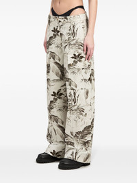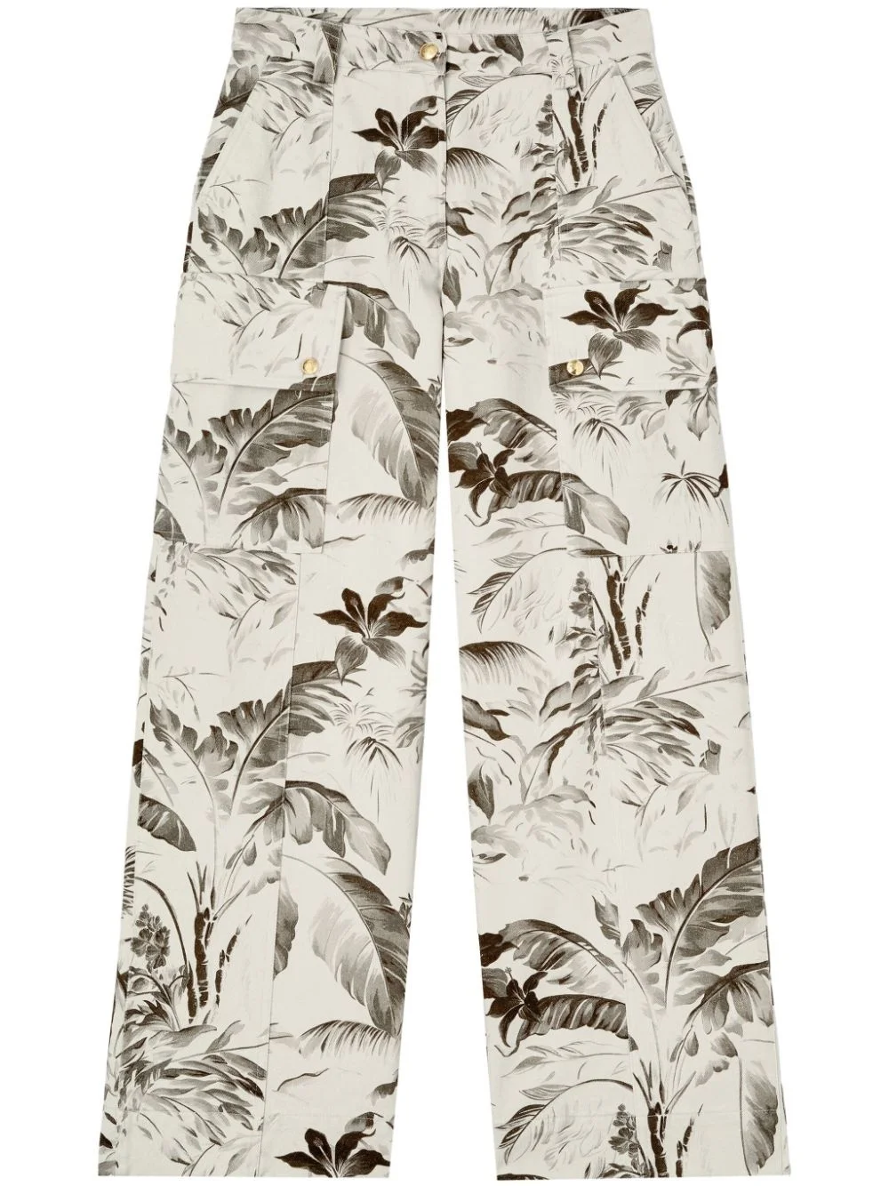 Jungle wide-leg cargo trousers Highlights - Light beige/olive green - Cotton - Palm tree print - Logo patch to the rear - Belt loops - Concealed fly and button fastening - Low-rise - Wide leg - Two side slash pockets - Two side cargo pockets - Two rear flap pockets Made in Italy Composition Cotton 100%, Leather 100% Washing instructions Read Manufacturer Guidelines