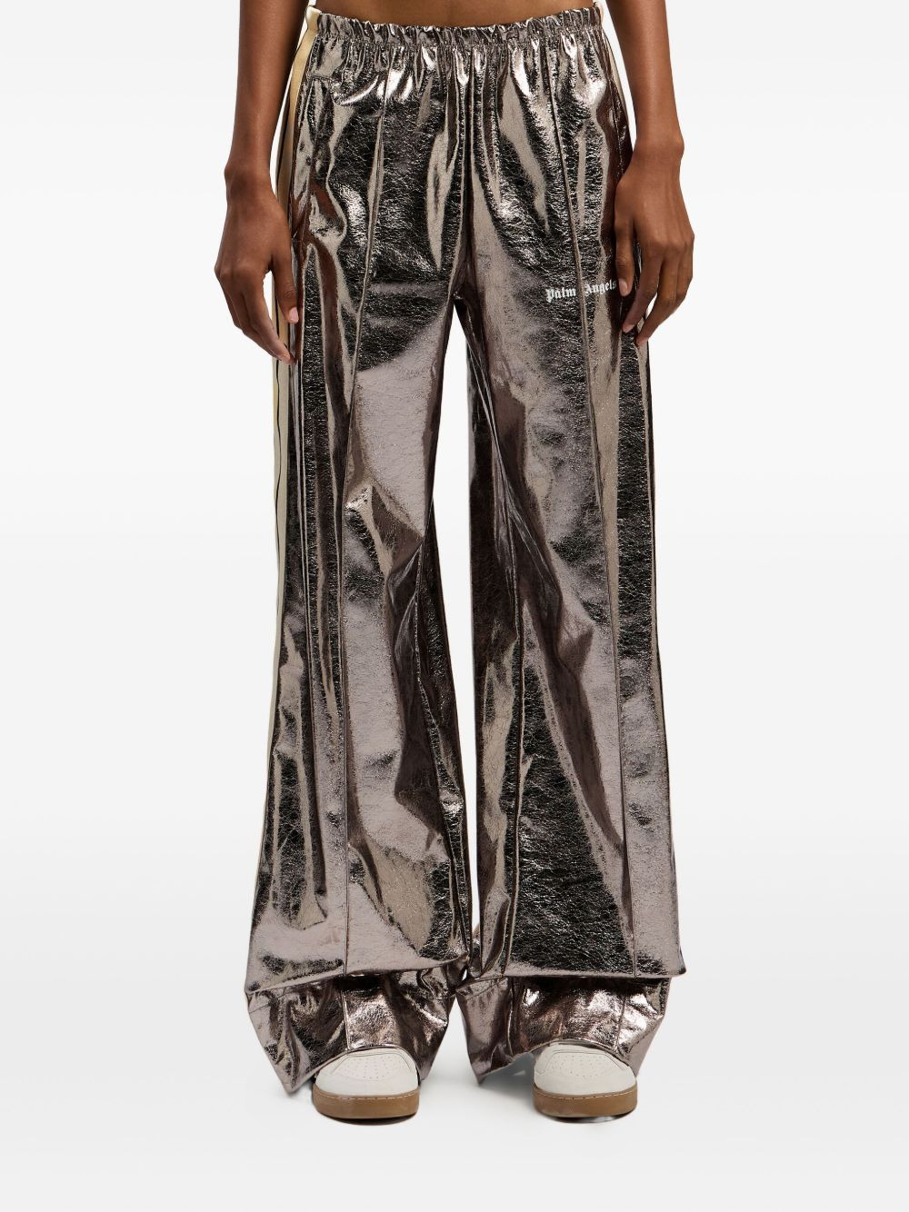 laminated wide-leg track pants