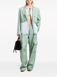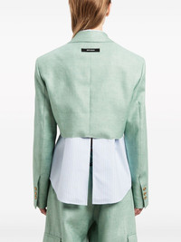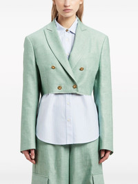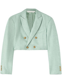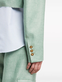linen cropped blazer Highlights - Mint green - Linen - Logo tag - Peak lapels - Double-breasted button fastening - Long sleeves - Buttoned cuffs - Raw-cut hem - Cropped Made in Italy Composition Lining: Cupro 100% Outer: Linen/Flax 100% Washing instructions Read Manufacturer Guidelines