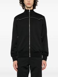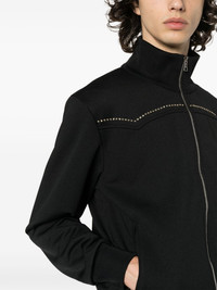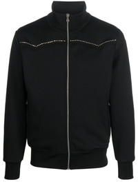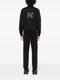 monogram-applique track jacket Palm Angels draws inspiration from the wild west to refresh its signature track jacket. It’s cut from black recycled jersey with a crystal-embellished yoke modelled after cowboy styles and a studded monogram at the back. Highlights - Black - Recycled polyester - Jersey texture - Tonal stitching - Funnel neck - Crystal embellishment - Long sleeves - Two side zip-fastening pockets - Studded logo detail - Ribbed cuffs and hem - Front zip fastening Made in Italy Composition Outer: glass 100%, Recycled Polyester 100% Lining: Polyester 100% SIZE & FIT Model measurements Height 6 ft 1 in(1.85 m) Bust/Chest 36.22 in(92 cm) Hips 36.22 in(92 cm) Waist 27.55 in(70 cm) FittingInformation Designed for a relaxed fit, this piece allows for comfort and movement when worn Made from a midweight non-stretch fabric, this piece offers minimal elasticity when worn This piece fits true to size – take your usual size Measurement CHEST 40.94 in(104 cm) SLEEVE LENGTH 33.85 in(86 cm) LENGTH 25.59 in(65 cm) Washing instructions Hand Wash