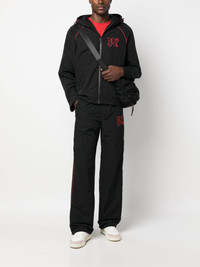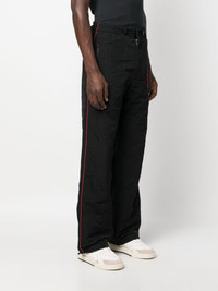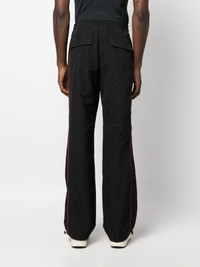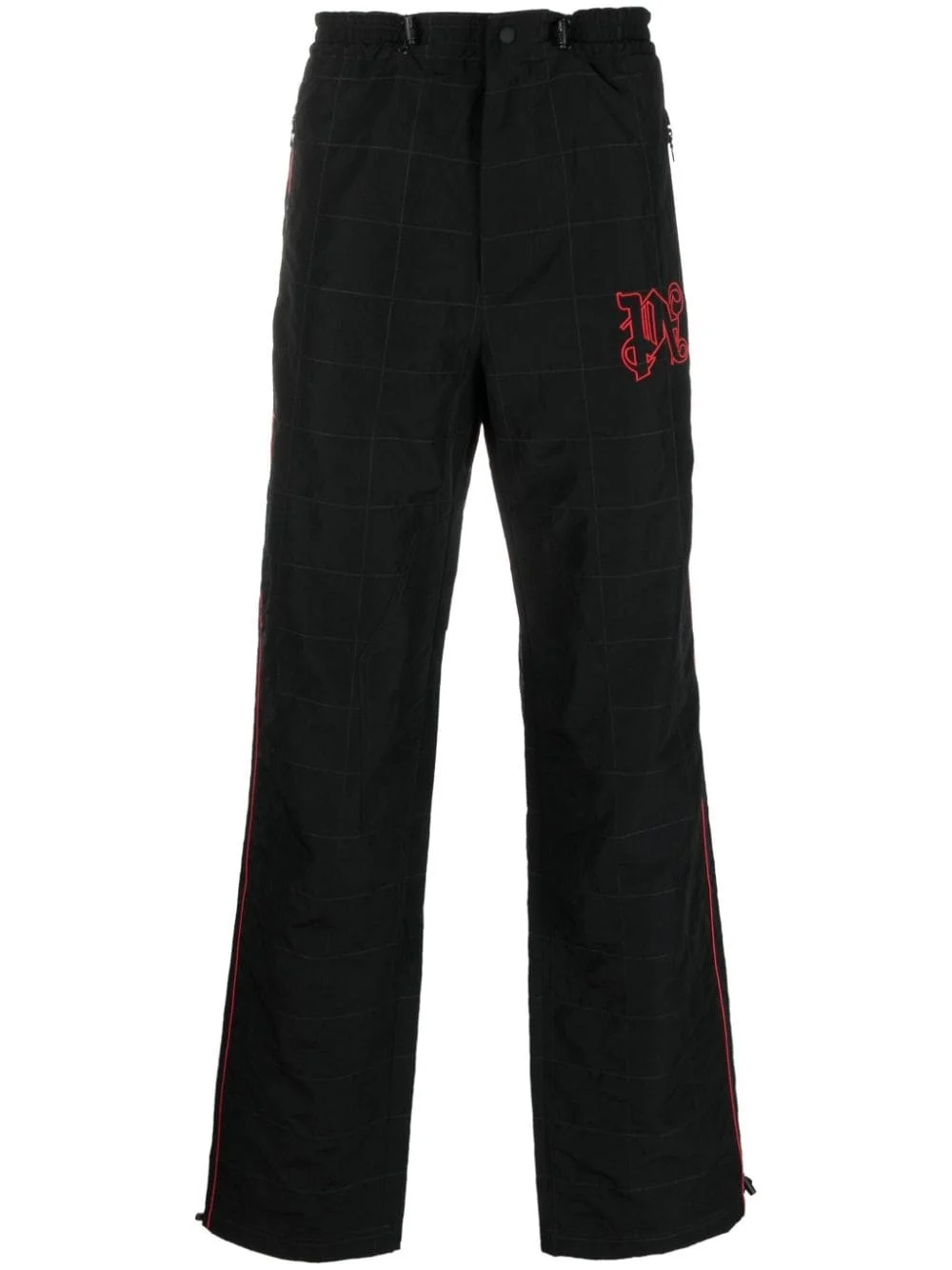 logo-embroidered checked trousers Palm Angels epitomizes its streetwear ethos with these trousers from the AW23 collection. Crafted from technical fabric, they are enriched by a subtle check pattern and adorned with a contrasting logo embroidery on the side. The drawstring waist and adjustable ankles impart a practical touch to the laid-back design. Highlights - Black/red - Check pattern - Embroidered logo to the side - Torchon piping detail - Elasticated drawstring waistband - Concealed fly and button fastening - Two side zip-fastening pockets - Two rear flap pockets - Straight leg - Drawstring cuffs - When buying this unisex item, keep in mind that it is graded in standard men's sizing. Made In Italy Composition Outer: Polyamide 59%, Polyester 41% Lining: Polyester 100% Washing instructions Machine Wash