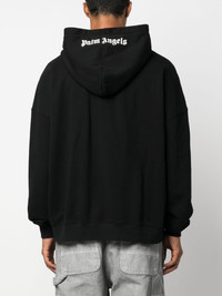 logo-embroidered cotton hoodie In line with Palm Angels' streetwear influences, this hoodie features an oversized silhouette. Constructed from soft cotton, the black backdrop is adorned with the label's gothic logo embroidered on the chest and hood, adding a hint of identity to the design. Highlights - Black/white - Cotton - Embroidered logo at the chest - Embroidered logo to the rear - Classic hood - Drop shoulder - Long sleeves - Front pouch pocket - Ribbed trim - Straight hem Made in Italy Composition Polyester 100%, Cotton 100% SIZE & FIT Model measurements Height 6 ft 2 in(1.88 m) Bust/Chest 36.61 in(93 cm) Hips 37.79 in(96 cm) Waist 28.74 in(73 cm) FittingInformation Designed for a regular fit, offering a comfortable loose fit throughout the body Made from a midweight non-stretch fabric, this piece offers minimal elasticity when worn This piece fits true to size – take your usual size Washing instructions Machine Wash