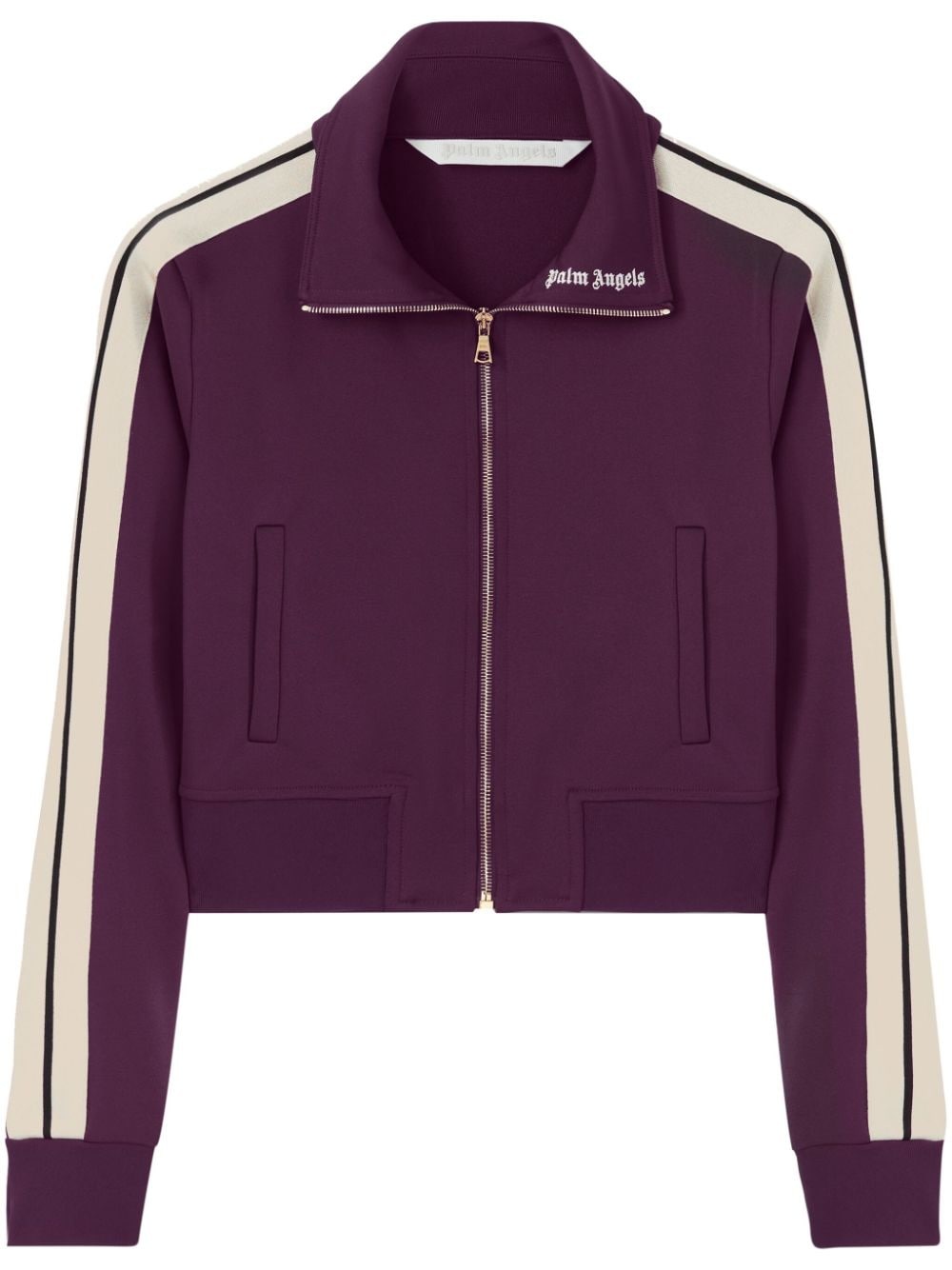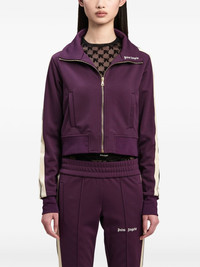 logo-embroidered cropped jacket Highlights - Plum purple - Jersey texture - Logo-embroidered collar - Side stripe detailing - Front zip fastening - Long sleeves - Ribbed cuffs and hem - Two side welt pockets - Cropped - Straight hem Made in Italy Composition Outer: Polyester 100% Lining: Polyester 100%