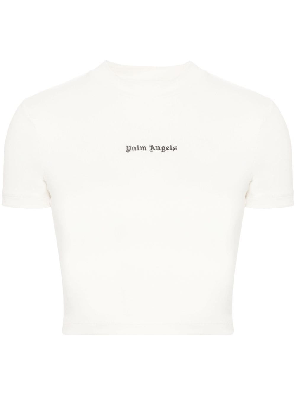 logo-embroidered cropped T-shirt Highlights - Cream white - Jersey texture - Crew neck - Short sleeves - Embroidered logo at the chest - Cropped - Straight hem Imported Composition Polyester 47%, Cotton 47%, Elastane 6% SIZE & FIT Model measurements Height 5 ft 9 in(1.75 m) Bust/Chest 34.64 in(88 cm) Hips 36.61 in(93 cm) Waist 26.37 in(67 cm) FittingInformation Designed for a close fit throughout Cropped in length Made from a midweight stretch fabric, this piece offers elasticity and flexibility when worn This piece fits true to size – take your usual size Washing instructions Hand Wash