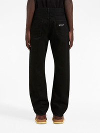logo-embroidered denim jeans Inspired by the skate community and laid-back vibe of Los Angeles, Palm Angels imbues these jeans with its characteristic casual style. Cut for a loose silhouette, they are crafted in blue cotton and adorned with a contrasting white logo embroidered onto the rear pocket. Highlights - Black - Cotton - Washed denim - Embroidered logo to the rear - Belt loops - Front button and zip fastening - Classic five pockets Made in Italy Composition Lining: Polyester 65%, Cotton 35% Outer: Cotton 100%