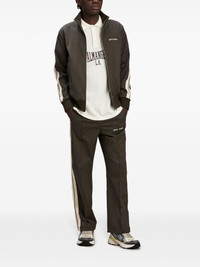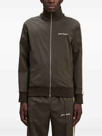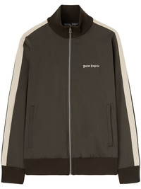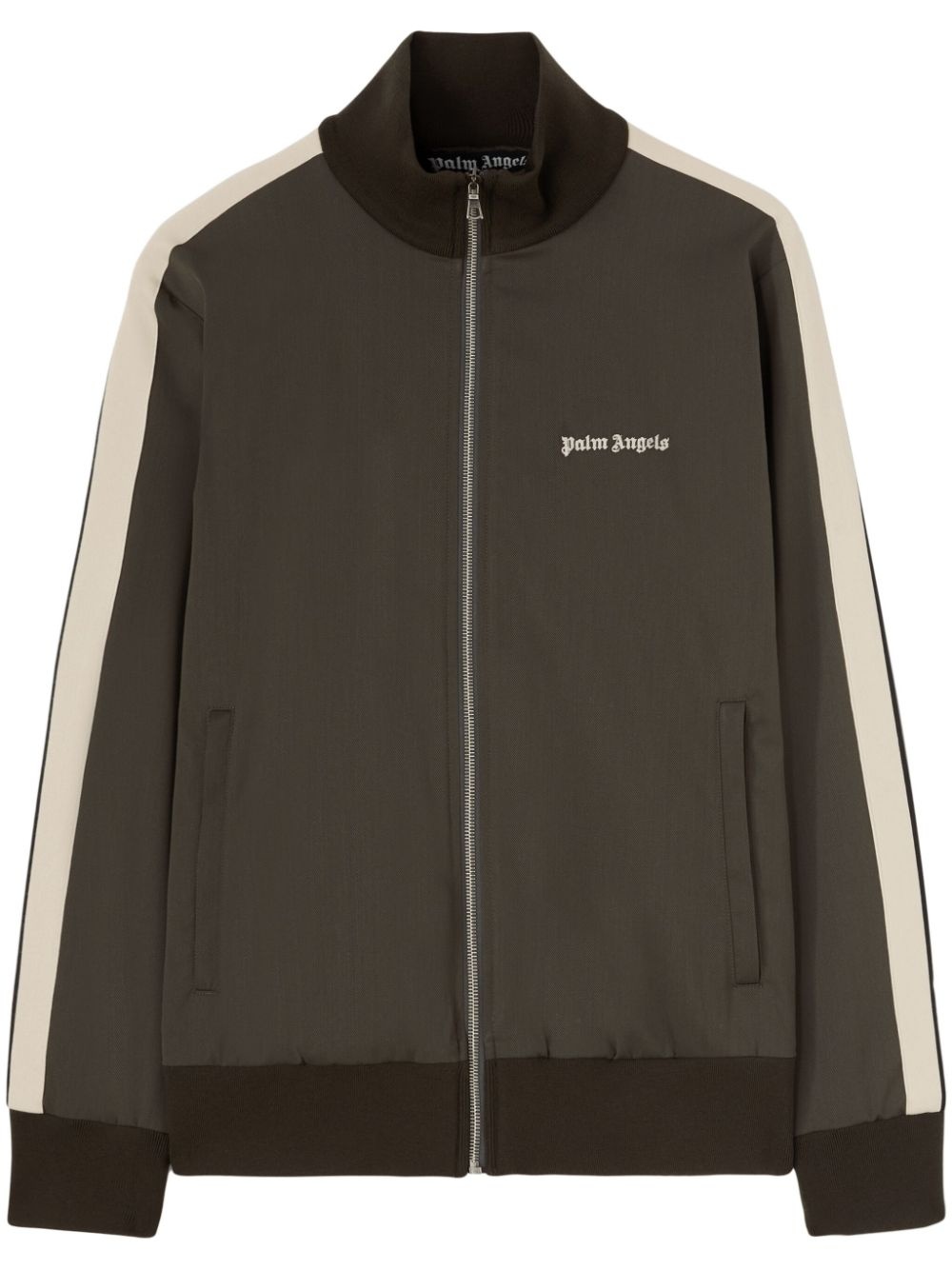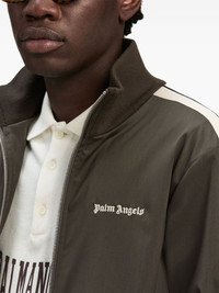logo-embroidered jacket Highlights - Taupe brown - Embroidered logo at the chest - Front zip fastening - High neck - Stripe detailing - Two side slit pockets - Long sleeves - Straight hem Made in Italy Composition Polyester 55%, Virgin Wool 43%, Spandex/Elastane 2%