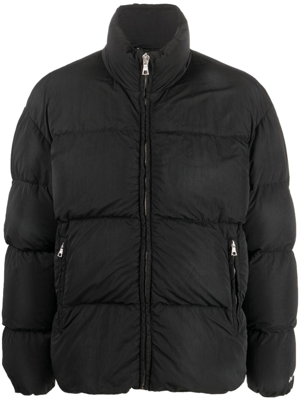 logo-embroidered padded jacket Blending style and functionality, this Palm Angels jacket showcases a streamlined silhouette enriched with duck-down filling for insulation purposes. The high neck and zip pockets provide extra convenience, while a small logo embroidery adds the finishing touch. Highlights - Black - Duck down - Padded design - Embroidered logo at the sleeve - High neck - Long sleeves - Two side zip-fastening pockets - Straight hem Made in Italy Composition Outer: Polyamide 100%, Polyester 100% Lining: Polyamide 100%, Duck Down 90%, Feather Down 10% SIZE & FIT Model measurements Height 6 ft 1 in(1.85 m) Bust/Chest 38.58 in(98 cm) Hips 37 in(94 cm) Waist 30.31 in(77 cm) FittingInformation Designed to be unstructured, offering a loose fit throughout The internal drawstring at the hem allows for fitted preferences Made from a padded non-stretch fabric, giving it no natural elasticity This piece fits true to size – take your usual size