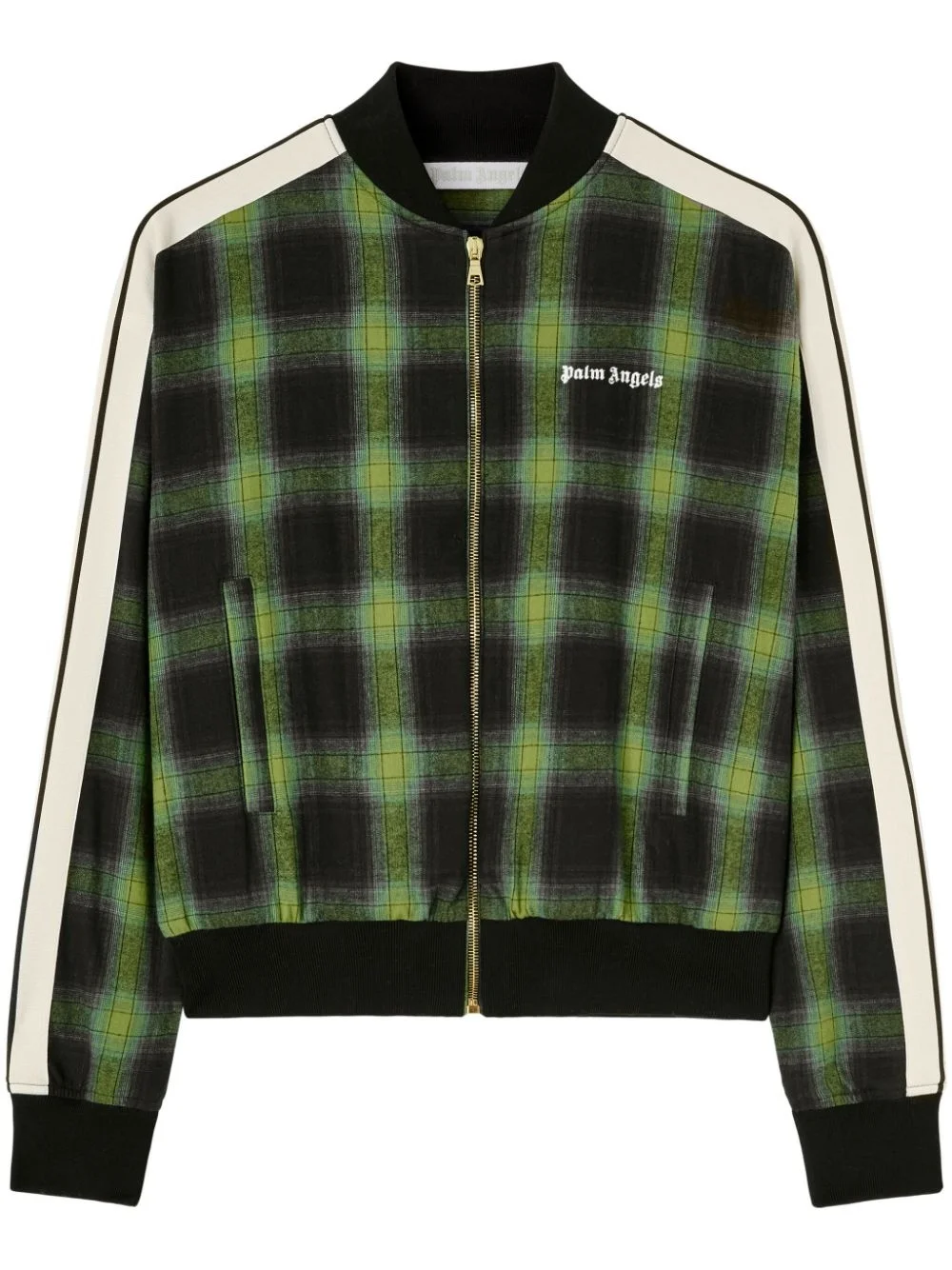logo-embroidered plaid bomber jacket Highlights - Grass green/multicolour - Plaid check pattern - Embroidered logo at the chest - Stripe detailing - Baseball collar - Front zip fastening - Long sleeves - Two side welt pockets - Ribbed cuffs and hem Made in Italy Composition Cotton 100%, Polyester 100% Washing instructions Read Manufacturer Guidelines
