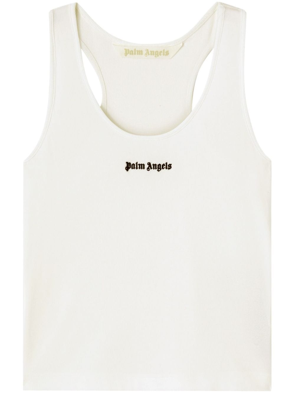 logo-embroidered ribbed tank top Highlights - White/black - Stretch-cotton - Ribbed knit - Embroidered logo to the front - Scoop neck - Sleeveless - Racerback - Straight hem Made in Italy Composition Cotton 93%, Elastane 7%