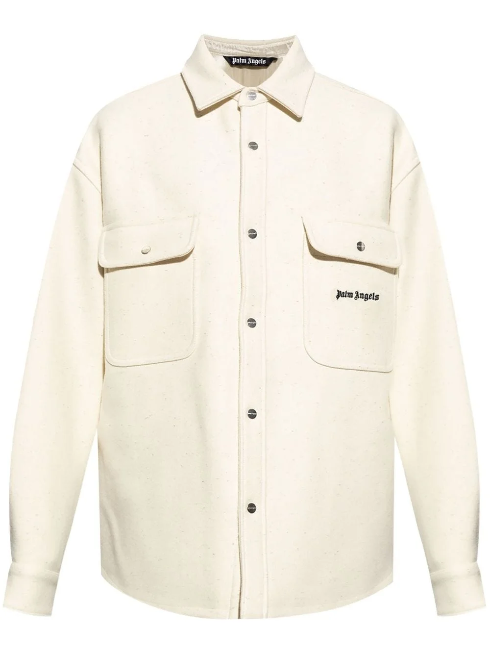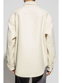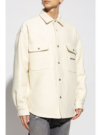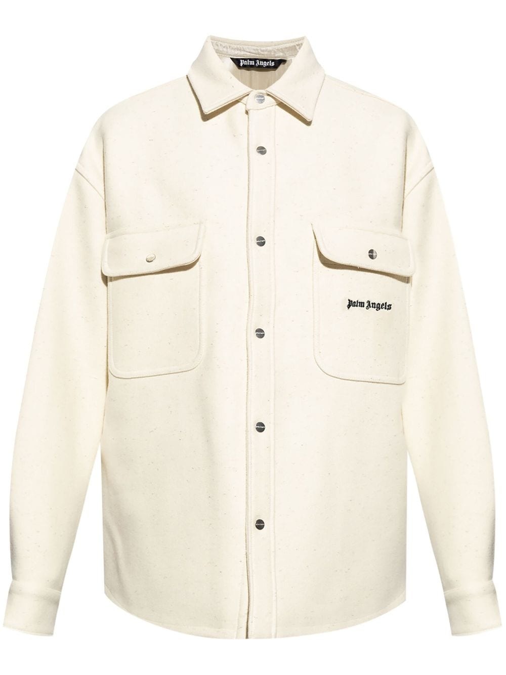 logo-embroidered shirt jacket Highlights - Cream white - Embroidered logo at the chest - Front press-stud fastening - Pointed flat collar - Logo-engraved buttons - Drop shoulder - Long sleeves - Press-stud fastening cuffs - Two chest flap pockets - Curved hem Made in Italy Composition Polyester 68%, Polyurethane 32%
