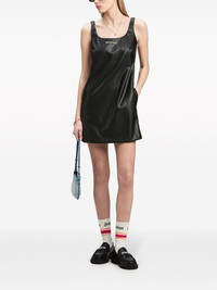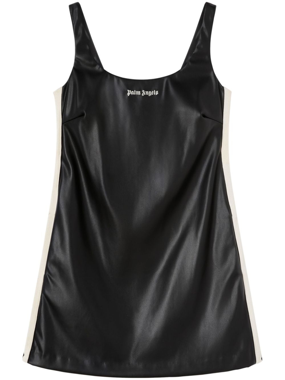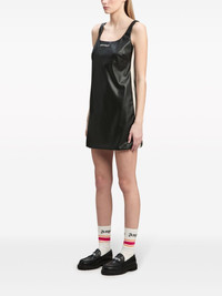 logo-embroidered square-neck minidress Highlights - Black/off-white - Artificial leather - Embroidered logo to the front - Side stripe detailing - Square neck - Sleeveless - Straight hem - Thigh-length - Slip-on style Made in Italy Composition Outer: Polyester 68%, Polyurethane 32% Lining: Viscose 100%