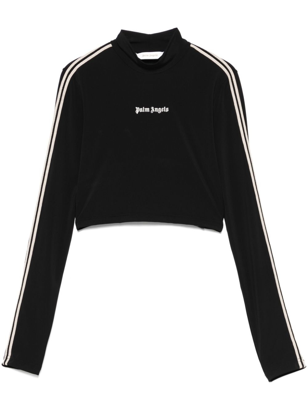 logo-embroidered T-shirt Highlights - Black - Side stripe detailing - Mock neck - Cropped Made in Italy Composition Cotton 100%, Polyester 100%, Polyamide 84%, Spandex/Elastane 16% SIZE & FIT Model measurements Height 5 ft 10 in(1.78 m) Bust/Chest 33.85 in(86 cm) Hips 36.61 in(93 cm) Waist 26.77 in(68 cm) FittingInformation Designed for a close fit throughout Made from a lightweight stretch fabric, this piece offers elasticity and flexibility when worn
