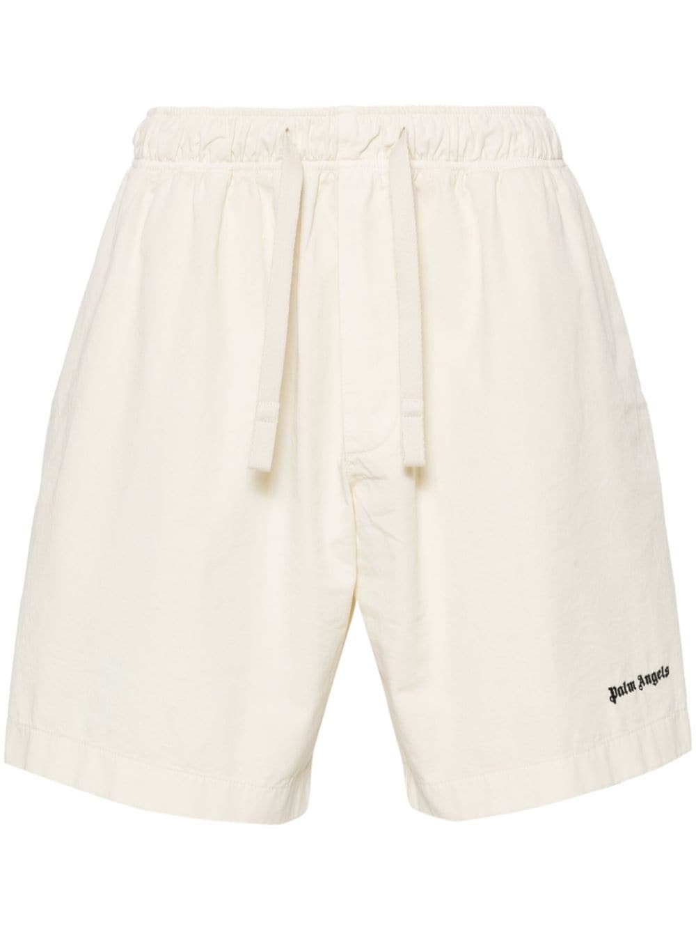 logo-embroidered bermuda shorts Sporty styles are Palm Angels’ bread and butter, and these track shorts continue that legacy. They’re cut from lightweight cotton twill with an elasticated drawstring waistband and Old English logo embroidery at the side. Highlights - Ivory white - Cotton - Twill weave - Elasticated drawstring waistband - Two side inset pockets - Embroidered logo at the leg - Rear patch pocket - Thigh-length - Cotton lining Made in Italy Composition Outer: Polyester 100%, Cotton 100% Lining: Cotton 100% SIZE & FIT Model measurements Height 6 ft 2 in(1.87 m) Bust/Chest 36.22 in(92 cm) Hips 37 in(94 cm) Waist 27.95 in(71 cm) Washing instructions Machine Wash