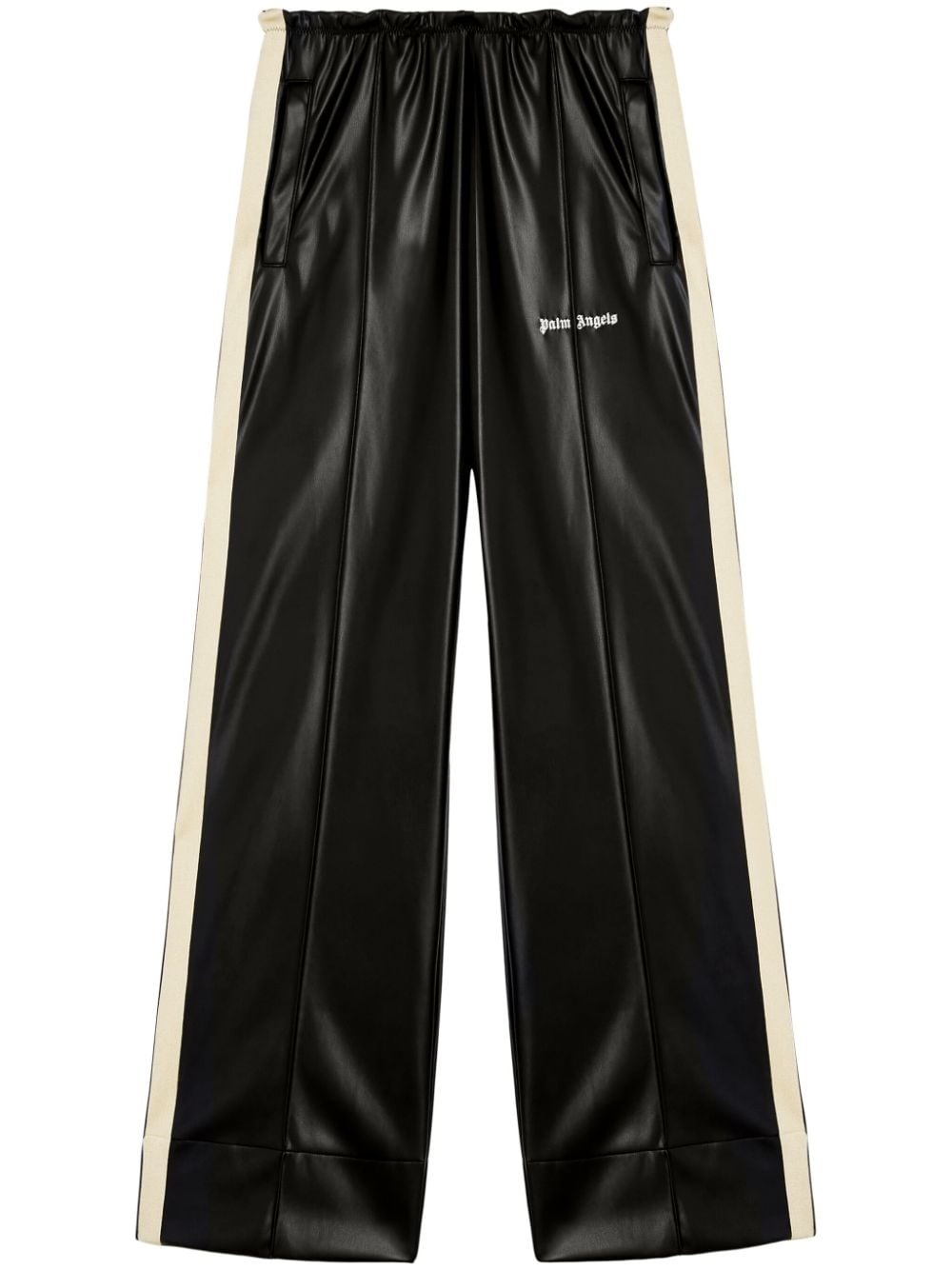 logo-embroidered wide-leg track pants Highlights - Jet black/off-white - Artificial leather - Embroidered logo to the front - Side stripe detailing - Pleat detailing - Elasticated waistband - Wide leg - Two side welt pockets - Pull-on style Made in Italy Composition Lining: Cotton 100% Outer: Polyester 68%, Polyurethane 32% Washing instructions Read Manufacturer Guidelines