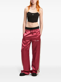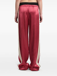 logo fluid track pants Highlights - Red - Satin finish - Logo print at the leg - Side stripe detailing - Layered design - Elasticated drawstring waistband - Two side welt pockets - Wide leg Made in Italy Composition Viscose 100%, Polyester 100%