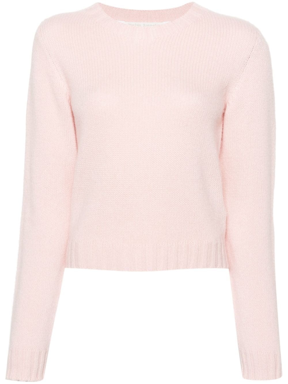 curved-logo wool-blend jumper Highlights - Light pink - Wool blend - Ribbed knit - Jacquard logo motif - Crew neck - Long sleeves - Straight hem Made in Italy Composition Wool 80%, Polyamide 20% SIZE & FIT Model measurements Height 5 ft 11 in(1.8 m) Bust/Chest 31.49 in(80 cm) Hips 36.61 in(93 cm) Waist 24.4 in(62 cm) FittingInformation Designed for a slim fit that sits just away from the body offering a close yet comfortable fit Made with a midweight knit, this piece offers some stretch This piece fits true to size – take your usual size Washing instructions Hand Wash
