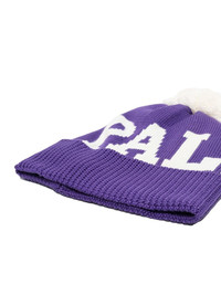 logo knitted pompom beanie Renowned for its streetwear aesthetic, Palm Angels continues to imbue each item with its signature off-duty edge. Boasting a playful pompom detail, this beanie is detailed with a knitted logo that ties in with the label's penchant for logomania. Made in Italy Composition Wool 50%, Acrylic 50% Washing instructions Dry Clean Only