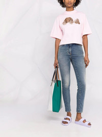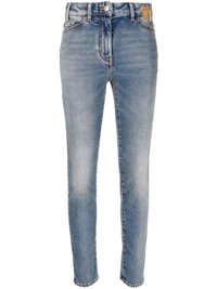 logo-patch denim jeans Inspired by the Los Angeles skateboard scene and the founder's Italian heritage, Palm Angels creates refined pieces with streetwear influences. Seen on this pair of denim jeans from the SS22 collection, the garment features contemporary distressed-effect detailing and a logo patch at the side. Made in Italy Composition Lining: Polyester 65%, Cotton 35% Outer: Leather 100%, Cotton 98%, Spandex/Elastane 2% SIZE & FIT Model measurements Height 5 ft 11 in(1.8 m) Bust/Chest 31.49 in(80 cm) Hips 35.82 in(91 cm) Waist 24.8 in(63 cm) FittingInformation This piece fits true to size. We recommend you get your regular size Cut for a slim fit Made with a mid-weight stretch fabric Washing instructions Machine Wash