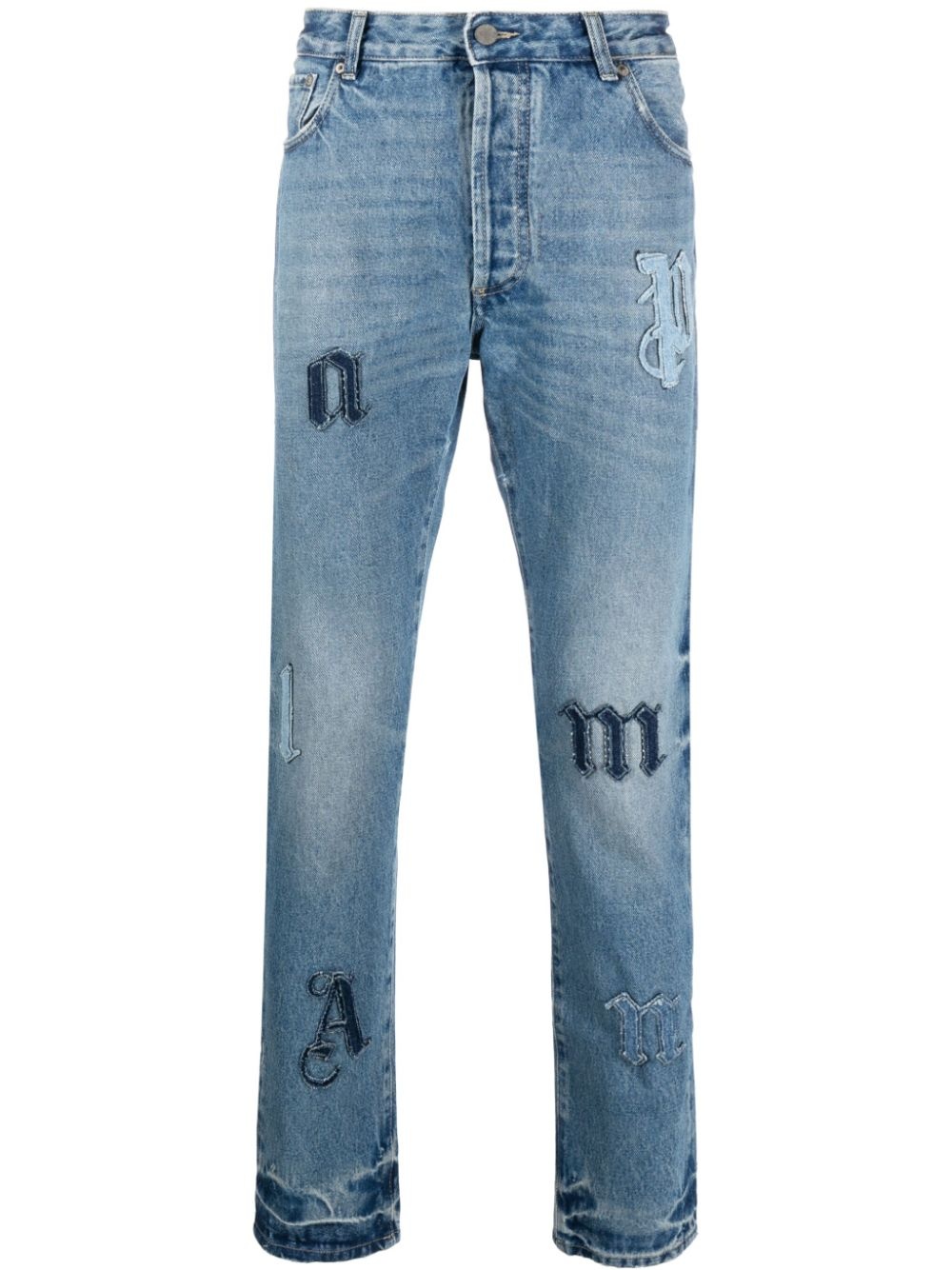 logo-patch straight jeans Palm Angels infuses these jeans with branding motifs, thanks to the multiple monogram patches on the front. They're cut from light-wash cotton denim to a straight-leg silhouette and stitched with a natural leather patch at the back. Highlights - Light blue - Cotton - Straight leg - Patch detail - Logo patch to the rear - Mid-rise - Belt loops - Front button fastening - Classic five pockets Made in Italy Composition Outer: Cotton 100%, Leather 100% Lining: Cotton 100% SIZE & FIT Model measurements Height 6 ft 2 in(1.88 m) Bust/Chest 35.03 in(89 cm) Hips 35.82 in(91 cm) Waist 27.95 in(71 cm) FittingInformation Designed for a slim fit, these jeans offer a comfortable fit that sits just away from the leg Sturdy and hard-wearing, this denim piece offers no stretch This piece fits true to size – take your usual size Washing instructions Hand Wash