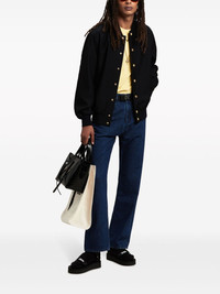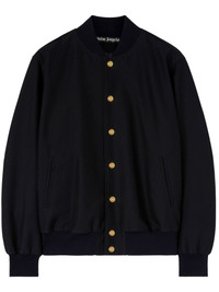 logo-print bomber jacket Highlights - Black/white - Cotton blend - Logo print to the rear - Ribbed band collar - Front button fastening - Long sleeves - Slip pockets to the sides Made in Italy Composition Outer: Cotton 70%, Polyester 30% Lining: Viscose 100% Washing instructions Read Manufacturer Guidelines