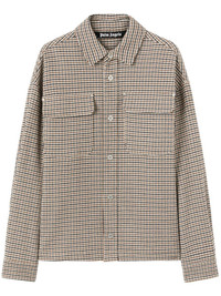 logo-print checked shirt jacket