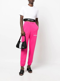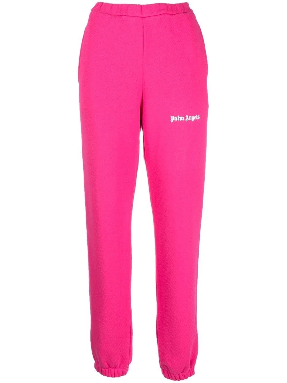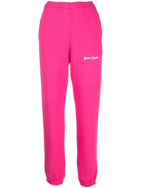 logo-print cotton track pants Italian brand Palm Angels simply decorates these cotton track pants with a printed logo over the leg. In contrasting white, the branded detail appears in the emblematic gothic iteration. Imported Composition Cotton 100%, Polyester 100% SIZE & FIT Model measurements Height 5 ft 10 in(1.77 m) Bust/Chest 32.28 in(82 cm) Hips 35.03 in(89 cm) Waist 25.19 in(64 cm) Measurement INSIDE LEG 28.74 in(73 cm) HIPS 40.94 in(104 cm) WAIST 26.77 in(68 cm) FittingInformation This piece fits true to size. We recommend you get your regular size Designed to be loose over the leg with a fitted waist and hem Made with a mid-weight fabric Washing instructions Hand Wash