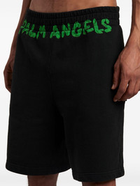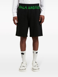 logo-print cotton track shorts Highlights - Black/green - Cotton - Logo print to the front - Elasticated waistband - Two side inset pockets - Straight hem Made in Italy Composition Cotton 100% Washing instructions Dry Clean Only